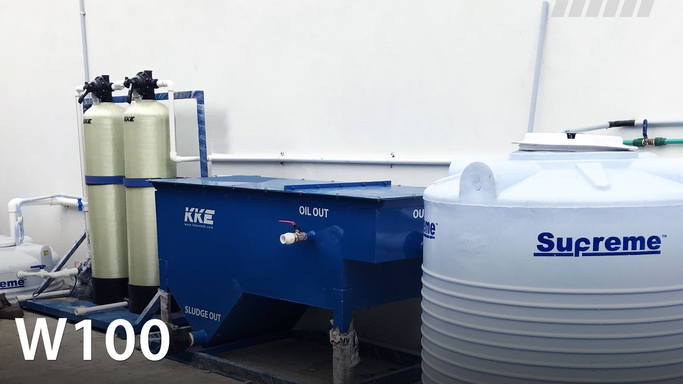 KKE W100 Water Recycling System is an Automatic Water recycling system which operates automatically and does not require manual intervention. Most water recycling systems shall require large tanks to Sludge settlement and Oil removal, however, KKE W100 does not require large tanks and can operate with small tanks while most of the processing happening above the ground.