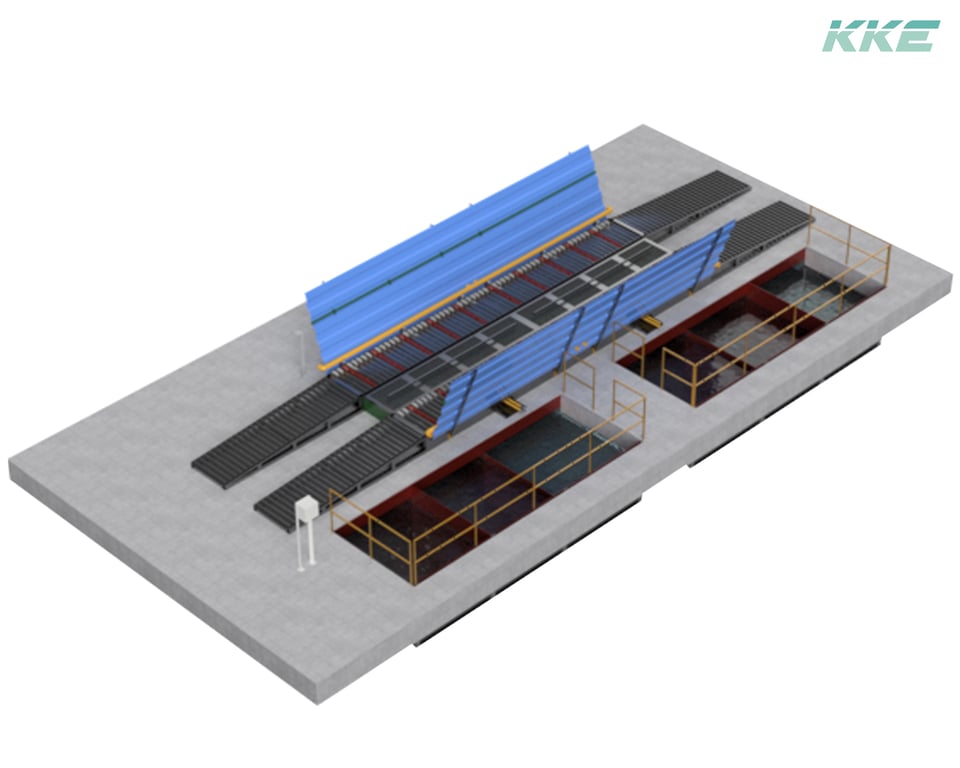 TW610 40.8 UG configuration consists of 8 m wash bay with Entry and Exit Ramps. The system caters for almost 2.5 tire rotations and is suitable for sticky kind of dirt. The settling Steel water tanks are under ground and the dirt settling is by gravity.