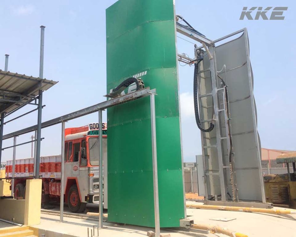KKE 503 is an Automatic Truck Wash System using High-Pressure Technology. High-Pressure Truck wash systems are suitable for fleets where the shapes are irregular and brushes cannot reach places to be cleaned.