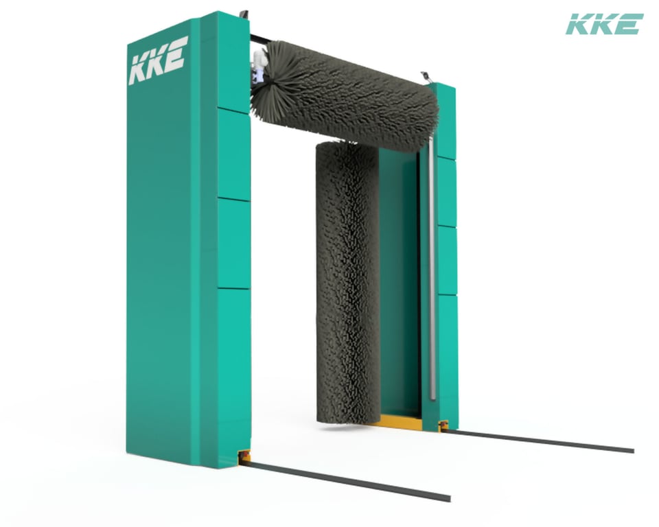 The Three Brush Truck Wash Equipment KKE 504 is fully automatic and operated by one operator. KKE 504 moves on ground mounted rails. The vehicle is driven in position and remains stationary and gantry moves over the vehicle and executes all operations.