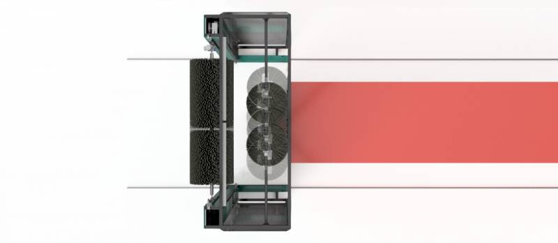 L'équipement utilise une technologie éprouvée à 3 brosses, une brosse douce au toucher qui glisse doucement sur la surface du véhicule tout en nettoyant le véhicule. L'équipement est capable de laver des camions, des bus de tailles inférieures aux dimensions lavables de l'équipement.